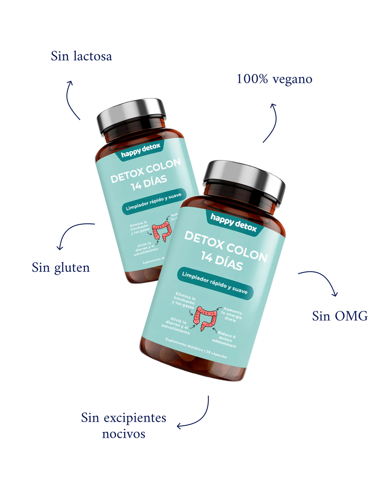 Los productos HappyDetox están elaborados con ingredientes naturales y, en general, son bien tolerados. Sin embargo, cada persona reacciona de forma diferente. Consulte a un profesional sanitario si tiene alguna duda específica.